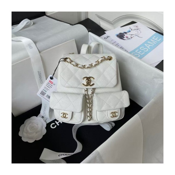 샤넬 투포켓 듀마 백팩 스몰 캐비어 화이트