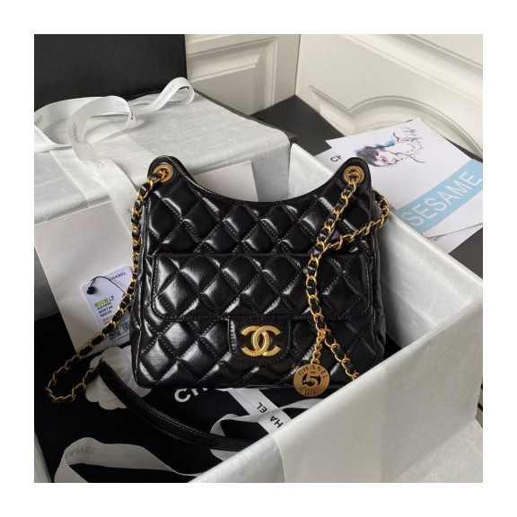 샤넬 샤이니 포켓 호보백 미듐 램스킨 금장