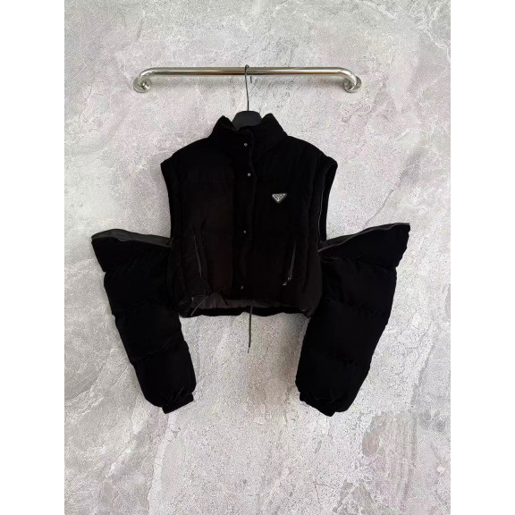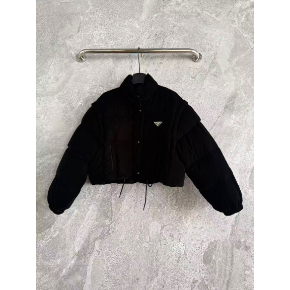 프라다 크롭 벨벳 다운 탈부착 자켓